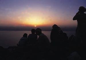the upper waterfall of What to carry Although daytime can be very hot, especially in the summer, the nights are usually chilly, and in the elevated places it can get very cold (in winter the temperature may drop below zero). Long cotton trousers, a cotton shirt and a sun hat are the best outfit for the day. Carry short trousers for walking in flowing canyons. A warm jacket and a warm hat are usually enough for the night. In the rainy season, take a rainproof jacket and an extra layer of thermal underwear for the night. Light walking boots are recommended footwear. When canyoning, sandals allow sand grains to injure your feet. Trainers are your best choice for walking in the water, but unless you don't mind carrying an arsenal of footwear with you, it is better to leave them behind. Sandals are always good to have, for instance when your boots are wet. Bear in mind that the commercial water bottles are usually too small. If you plan to camp, you will need a stock of at least 4.5 liters. Plastic beverage containers are excellent. Water purification tablets are useful. Sunglasses, suntan lotion and a lip ointment are mandatory. Sunset over the Dead Sea (Itai Haviv)
